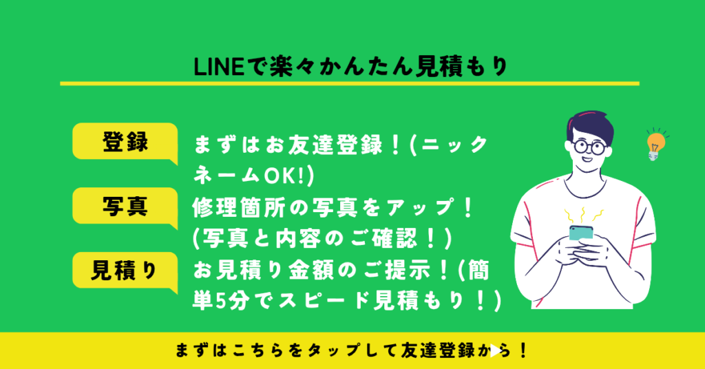 当店公式LINEのオンライン見積もりで、ガラス修理費用を簡単にご案内できます。従来どおり無料の現地調査・お見積もりも行っておりますので、お急ぎの方はお電話ください。