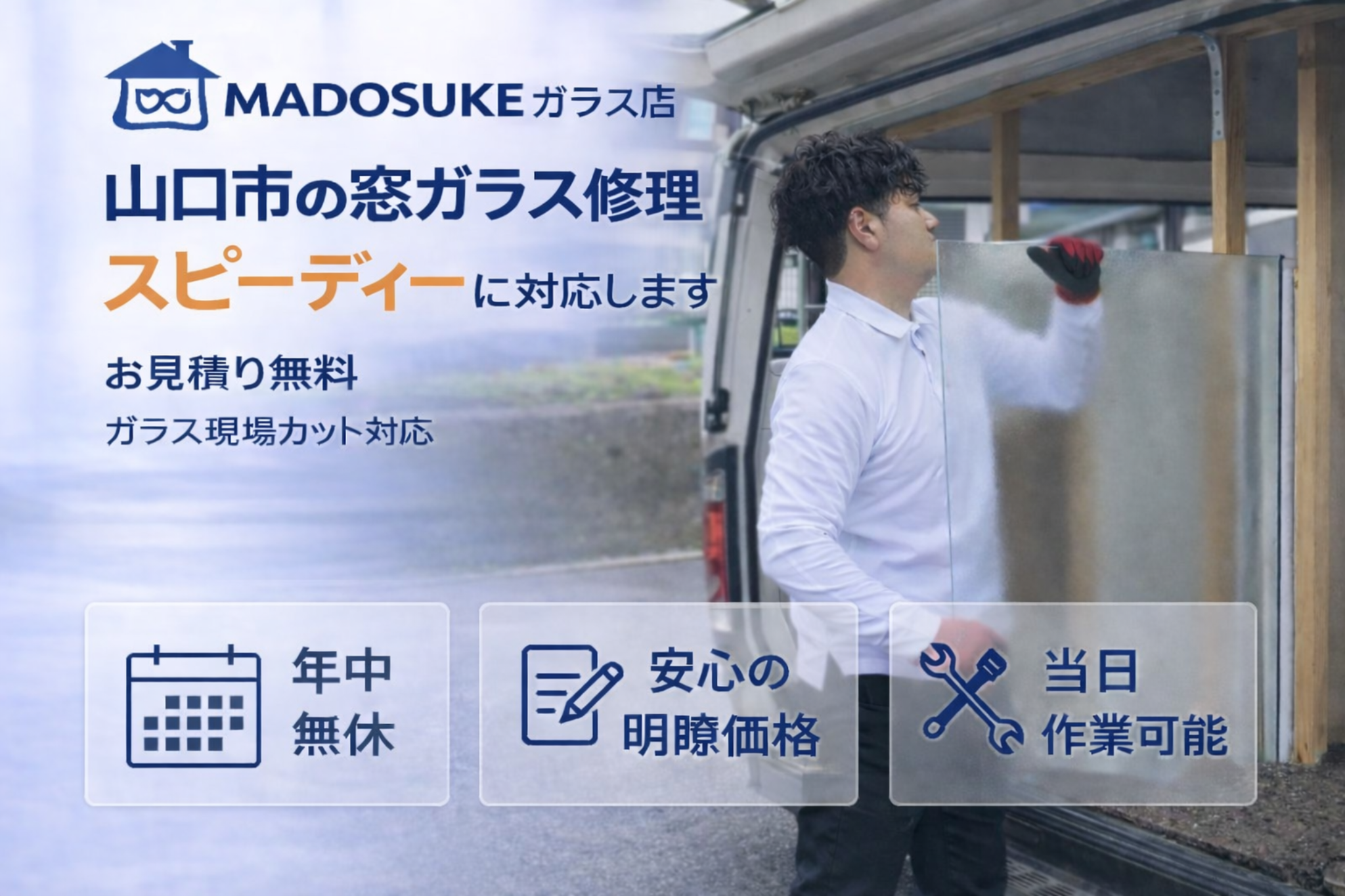 山口市のガラス修理・窓ガラス交換|宇部・防府拠点から出張対応|MADOSUKEガラス店