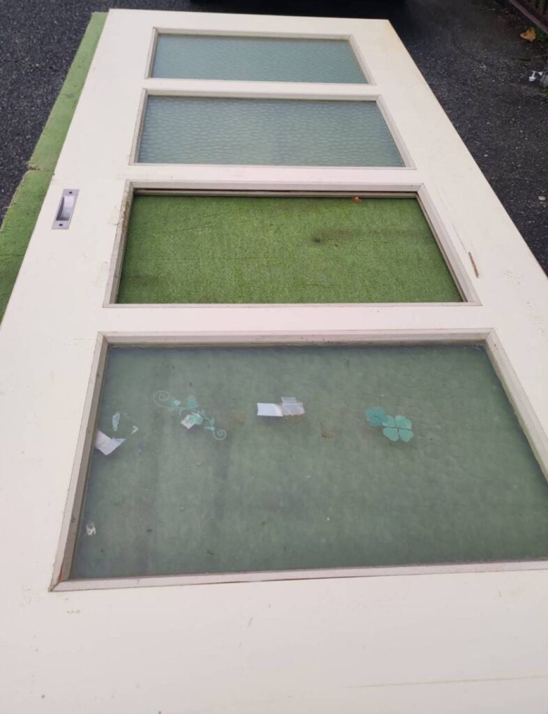 室内引き戸の亀甲ガラス割れを、現行品の型板ガラス(かすみ)へ交換修理しました。