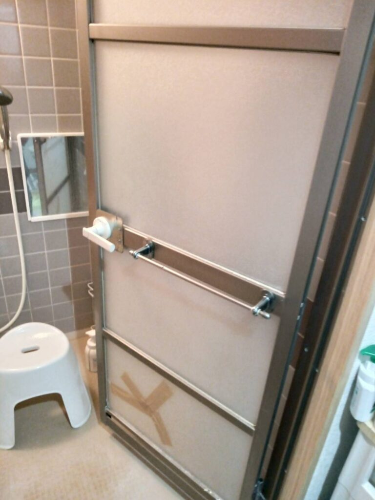 浴室開きドアのアクリル修理を行ないました。