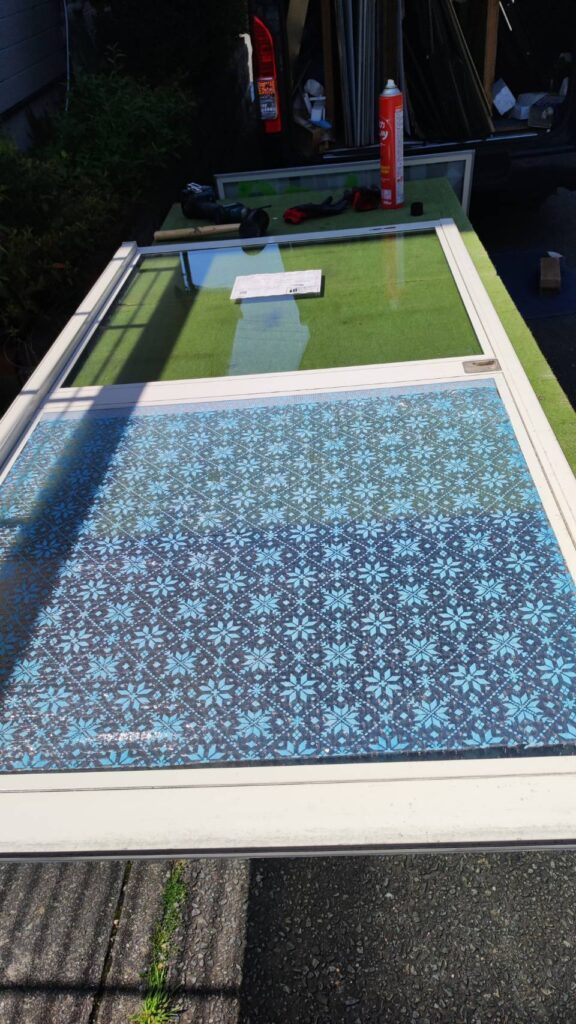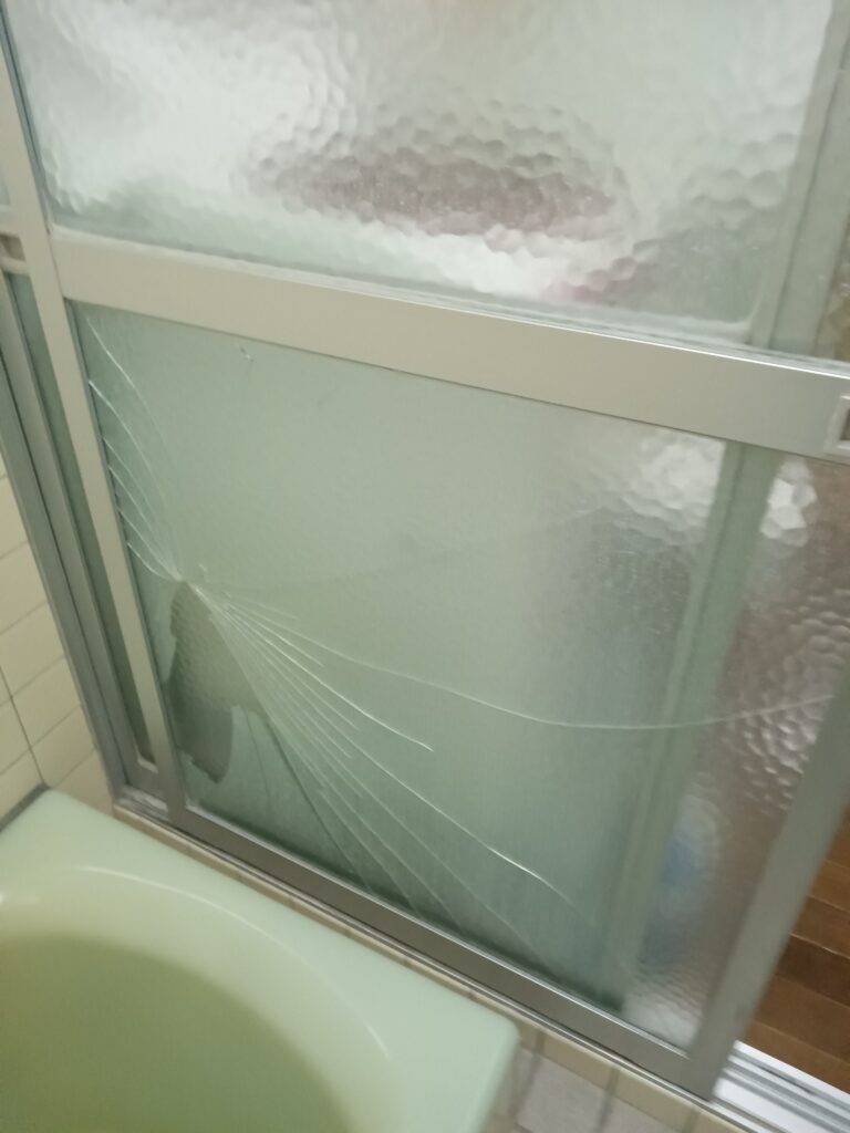 浴室引き戸の昭和型板ガラスの交換修理を行いました。